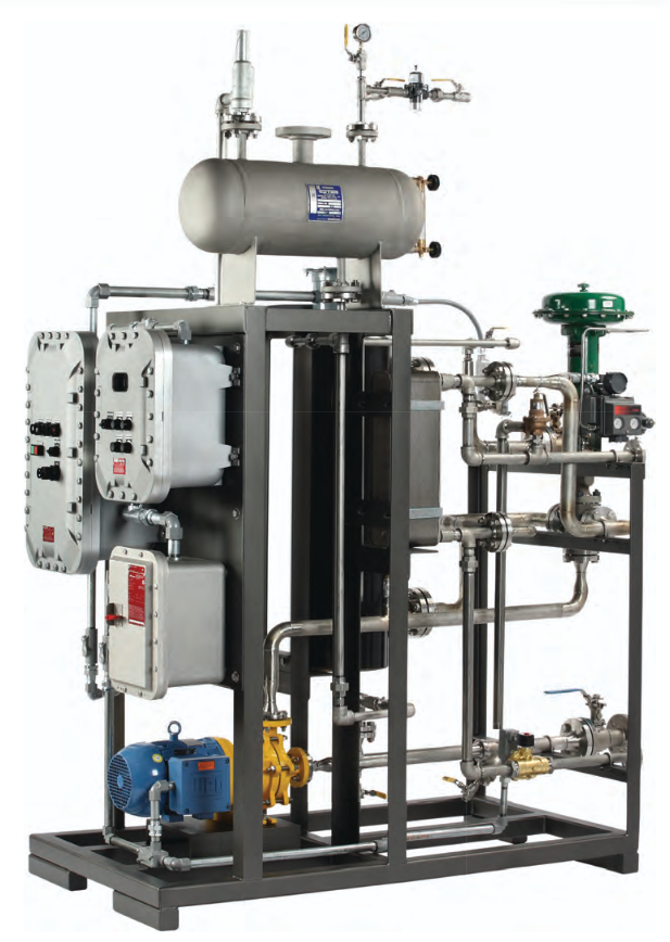 The Pick Constant Flow Steam Injector is used wherever a relatively constant flow of heated liquid at a precisely controlled temperature is required. The Constant Flow Steam Injector mixes medium-to-high pressure steam with cold water and delivers instant hot water. It is ideal when the water flow is fixed or varies over a narrow span (3:1). The Pick Heater is delivered as a complete, compact system and can be easily customized with additional controls, valves, and instrumentation to meet your plant specifications. Save space, energy and maintenance costs using a Pick Constant Flow Heating System.